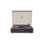 The Stave Record Player delivers sound that hits just right. The 60-watt speakers give your vinyl the power it deserves, while adjustable bass and treble controls put you in charge of the mix. The carbon fiber tonearm and Audio-Technica cartridge guarantee crisp, clear playback. Whether you’re streaming playlists through the built-in speakers or connecting wirelessly to external ones, built-in Bluetooth functionality gives you options. Finished with wood and gold accents, it’s as bold in looks as it is in sound.