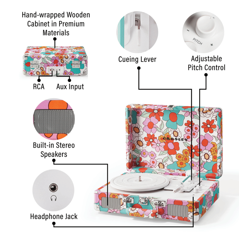Cruiser Plus – Platine Vinyle Bluetooth Groovy Floral