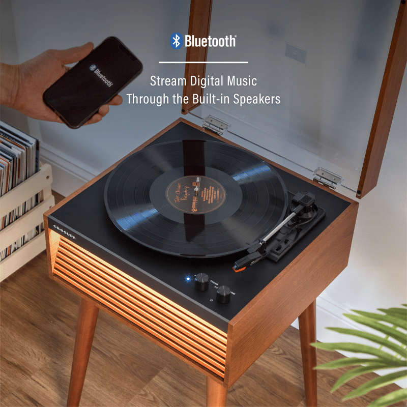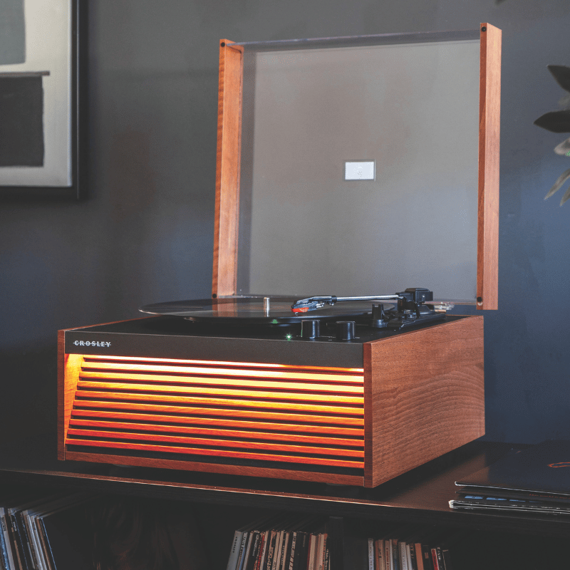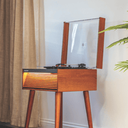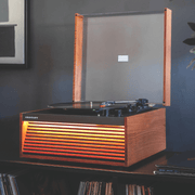 Avec son design à lames et son éclairage LED en option, le Dean Record Player apporte une touche contemporaine au style mid-century. La platine à trois vitesses lit tous vos disques préférés et ses haut-parleurs intégrés offrent un son riche. Choisissez les pieds en option pour un look classique ou optez pour une installation sur table plus compacte. Grâce à la connectivité Bluetooth et RCA, le Dean permet de diffuser facilement vos playlists ou de se connecter à des enceintes externes. Avec le Dean, vous ne jouez pas seulement de la musique, vous affirmez un style.